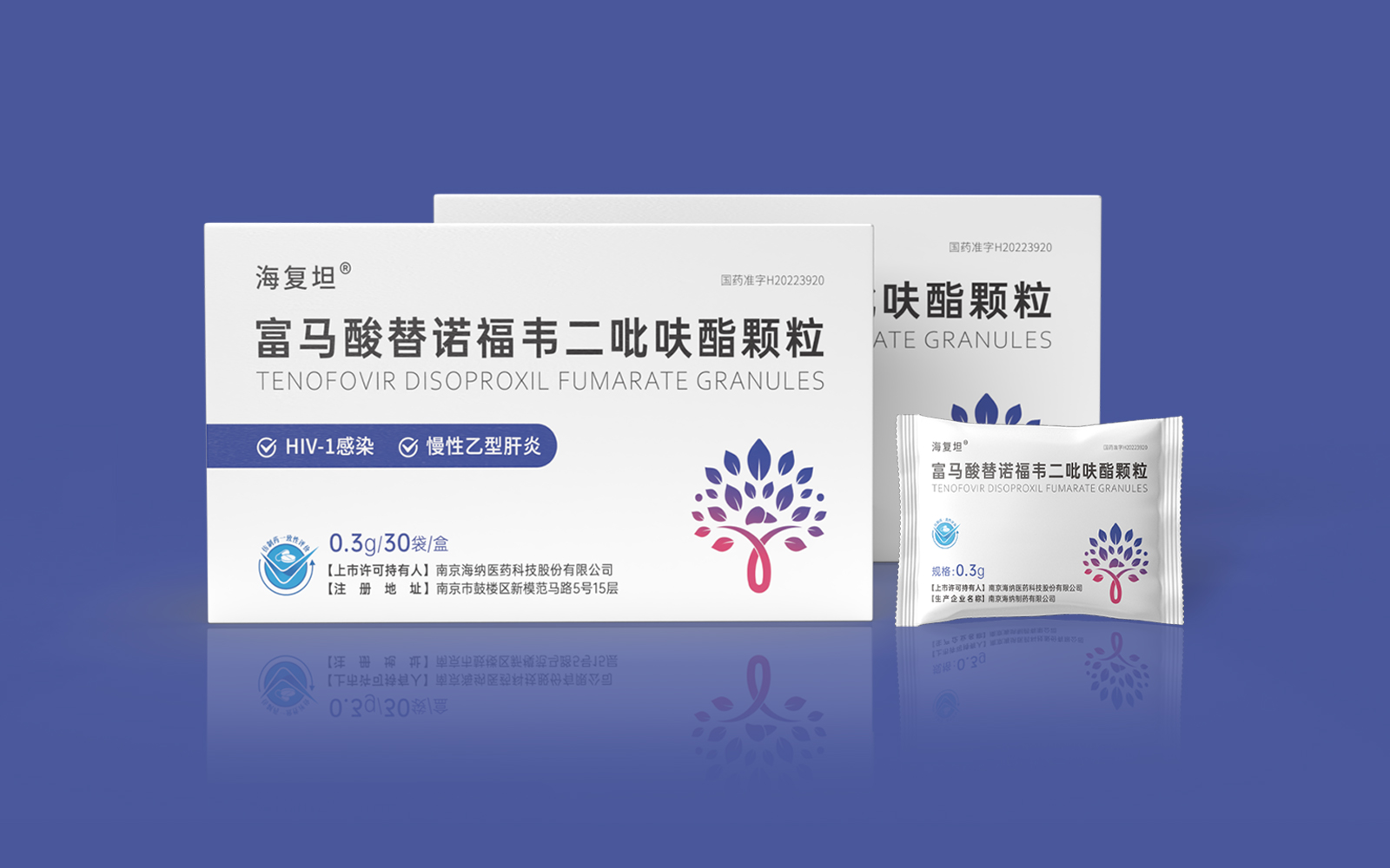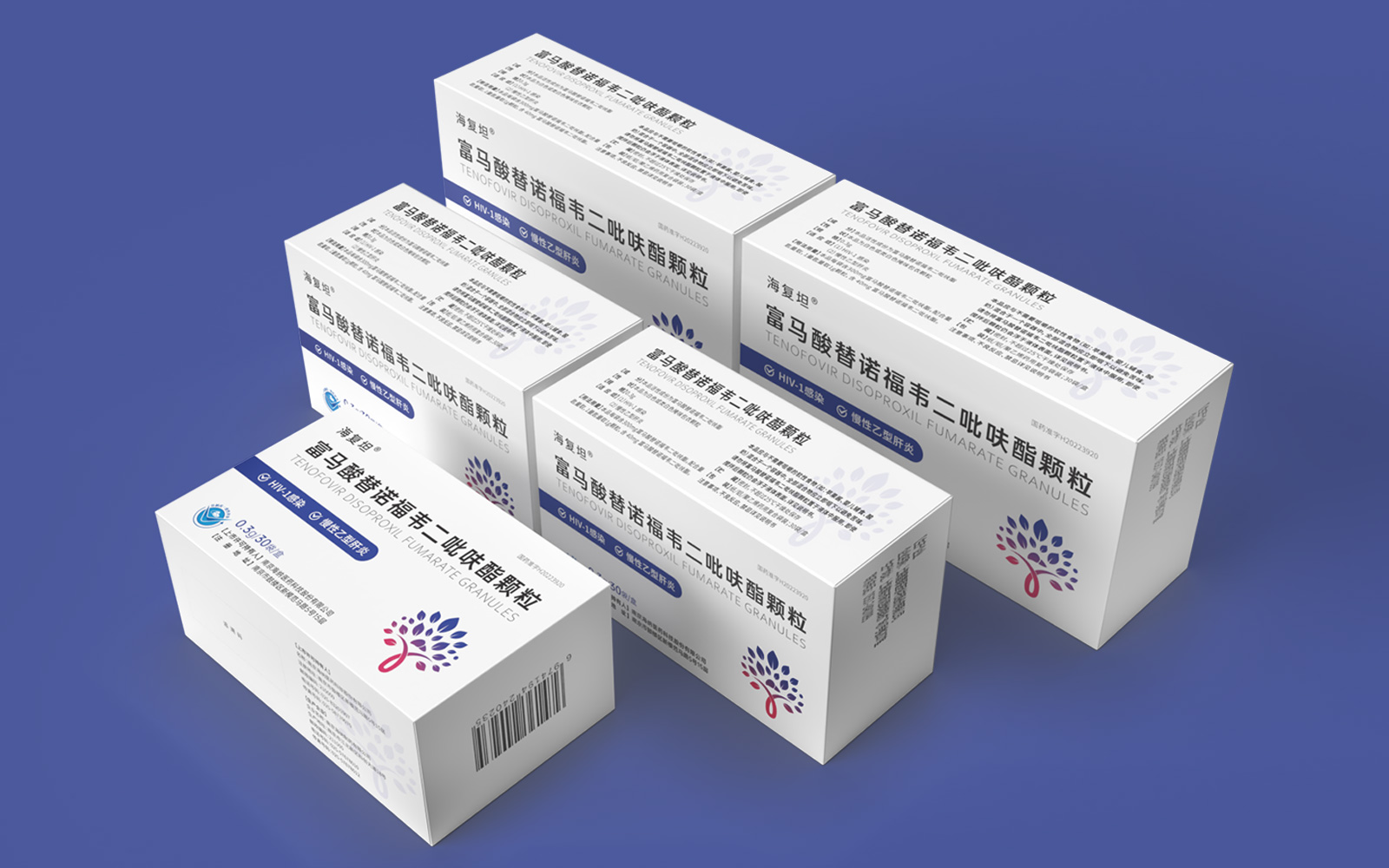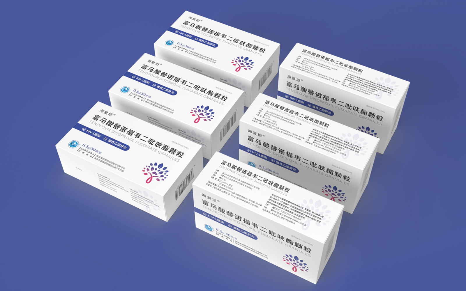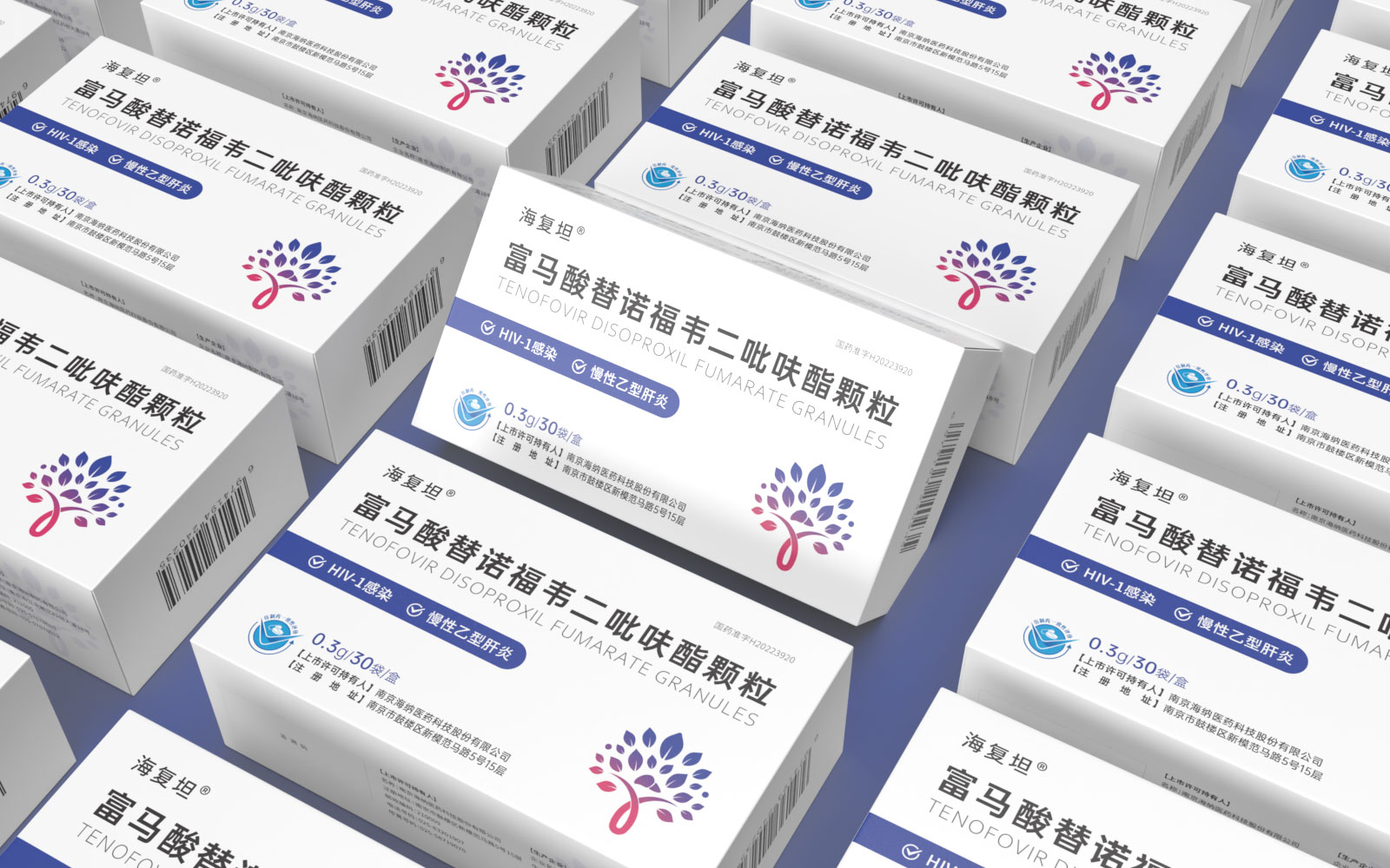主視覺由HIV標(biāo)識(shí)、肝、大樹、雙手結(jié)合設(shè)計(jì)呈大樹形主圖案。HIV》標(biāo)識(shí)\肝臟標(biāo)識(shí)突出產(chǎn)品適應(yīng)癥,大樹/樹葉寓意健康、生命和安全,象征成長(zhǎng)新生的希望之樹。雙手捧著代表呵護(hù)與關(guān)愛,象征著企業(yè)以人為本/以健康關(guān)愛為本。主視覺采用冷暖色漸變,藍(lán)色醫(yī)療屬性強(qiáng)烈,代表醫(yī)療健康、冷靜,粉紅色既有主治癥狀HIV標(biāo)識(shí)及肝部的色彩表現(xiàn)同時(shí)也代表著疼痛深藍(lán)到粉紅的處理方式.表現(xiàn)一種正在緩解及治療病狀的過程。