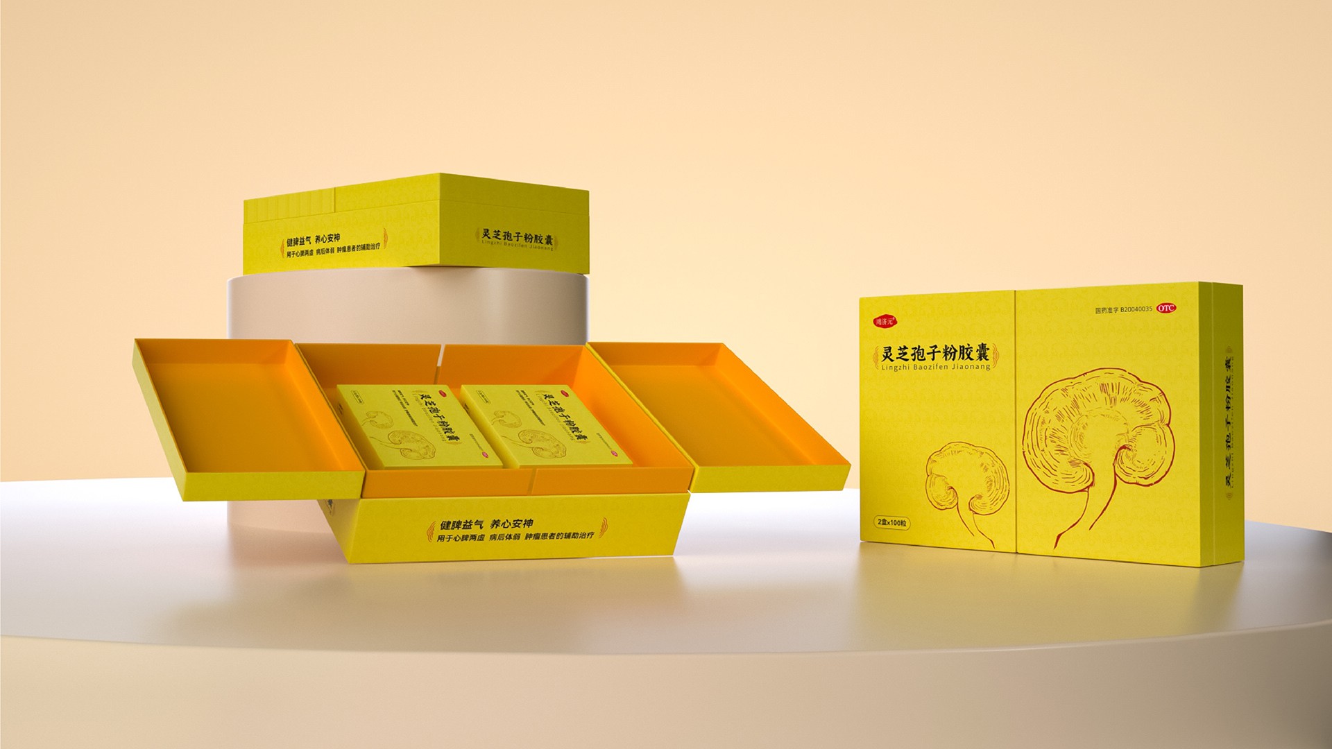 這款靈芝孢子粉膠囊的禮盒設(shè)計(jì),充分融合了現(xiàn)代審美與傳統(tǒng)文化元素,既彰顯了產(chǎn)品的專業(yè)品質(zhì),又凸顯了禮盒的高端定位。