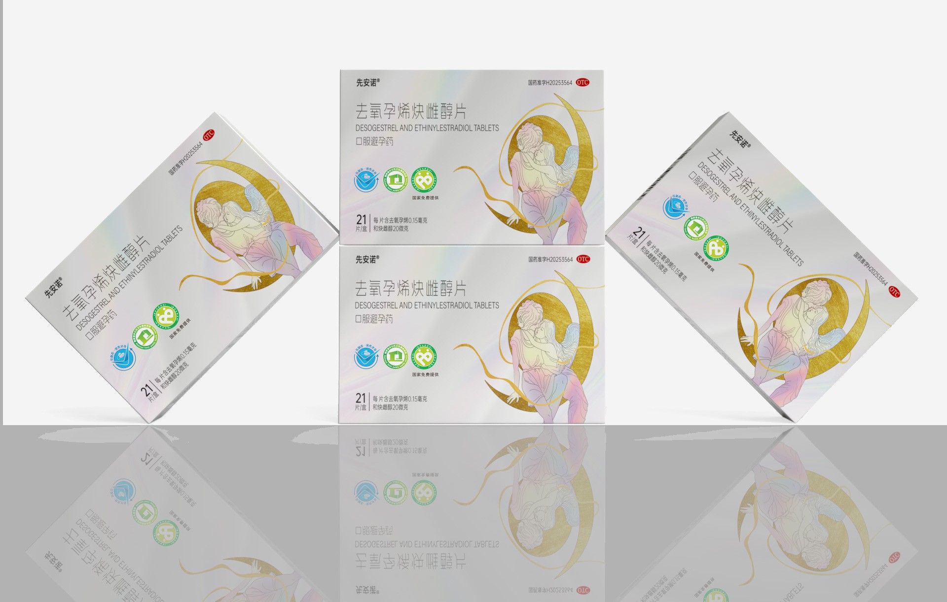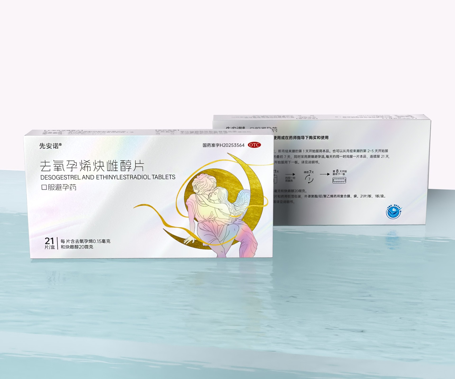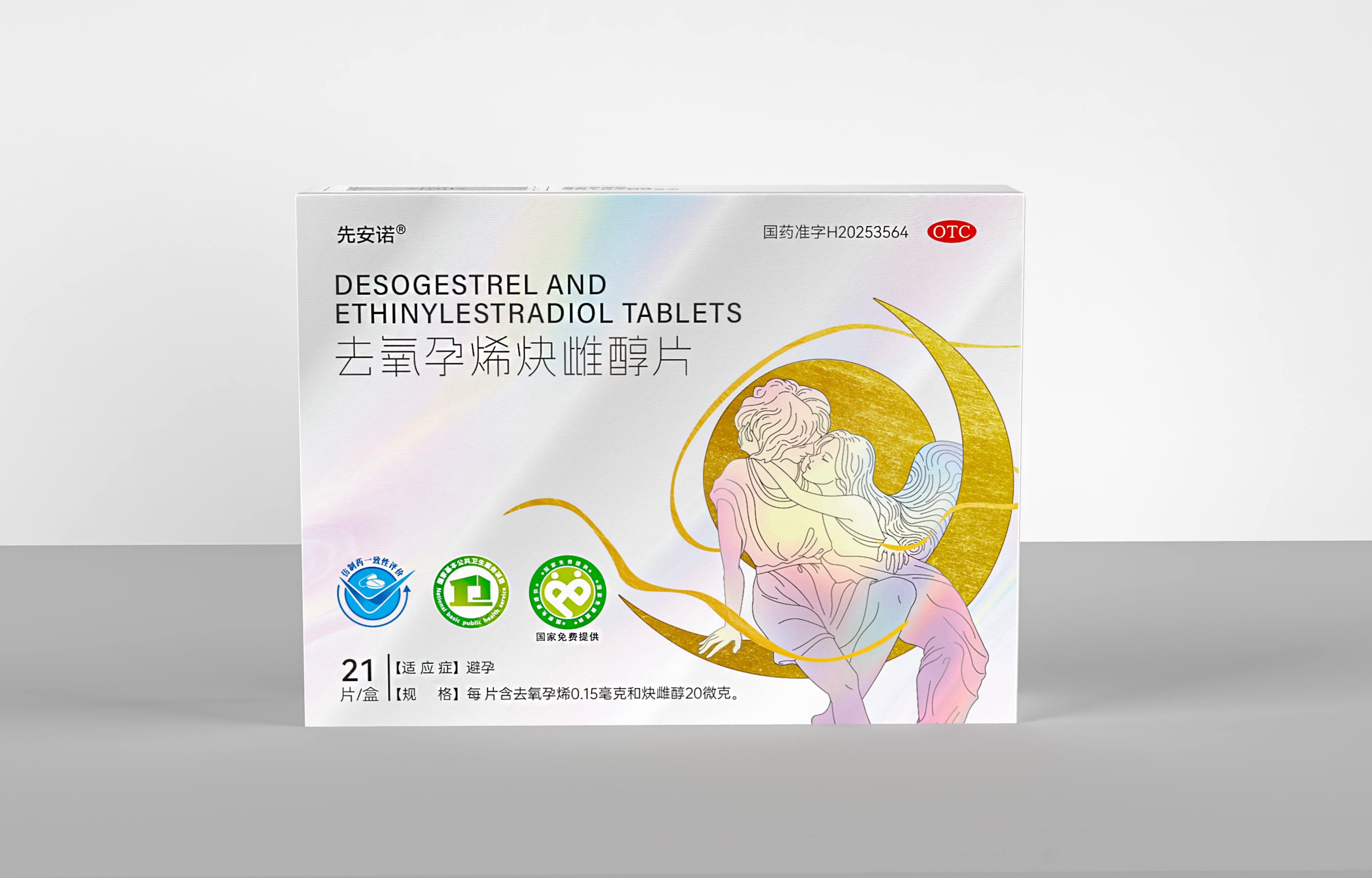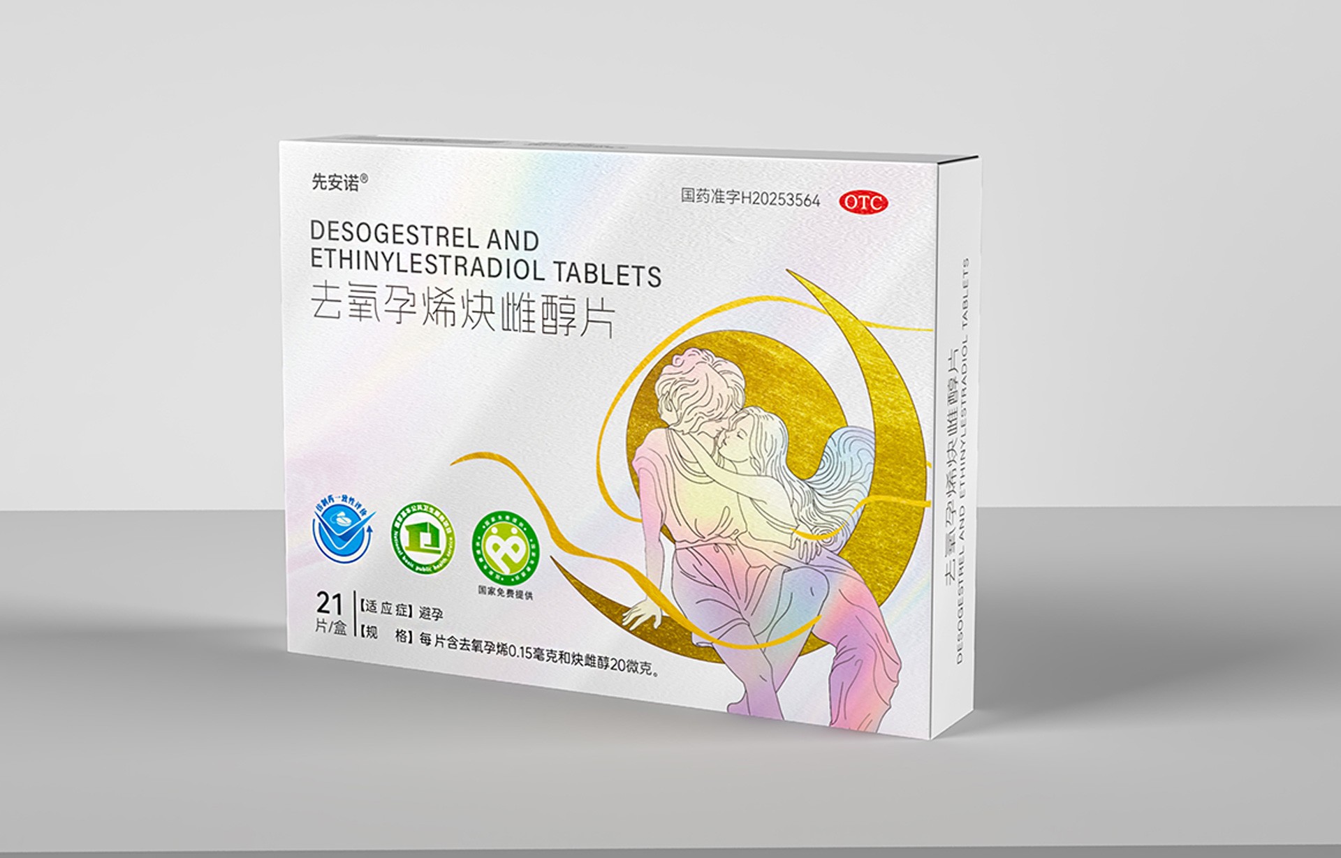 正面:突出產(chǎn)品通用名“去氧孕烯炔雌醇片”及品牌名“先安諾”,強調(diào)“長期避孕”核心功效;